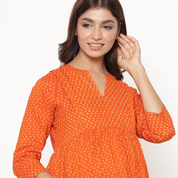 Orange Floral Printed Pure Cotton Maternity Midi Dress